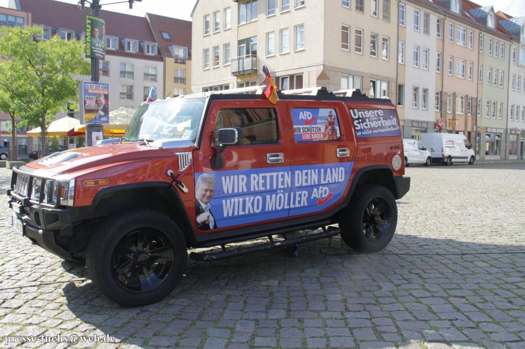 Wilko Möller möchte Oberbügermeister in Frankfurt/Oder werden. Der aus Hannover stammende ehemalige Bundespolizist sitzt seit 2019 für die AfD im Landtag von Bandenburg. Sein protziger Dienstwagen (Mercedes S-Klasse) ist unübersehbar bei AfD-Events.